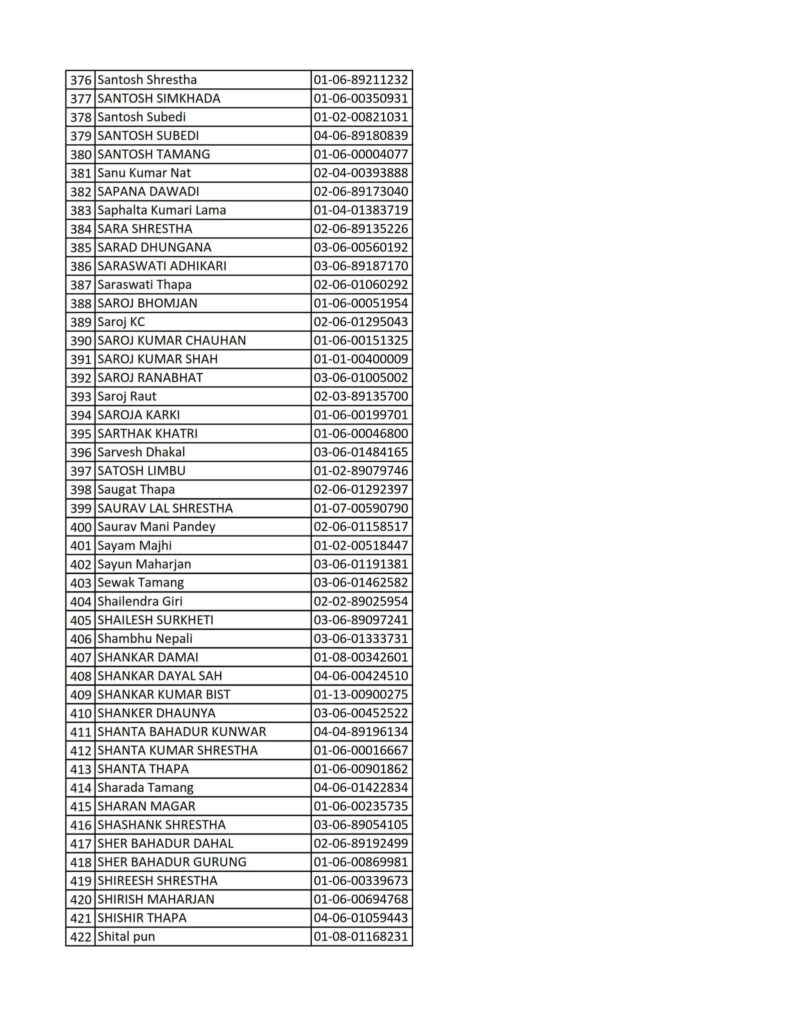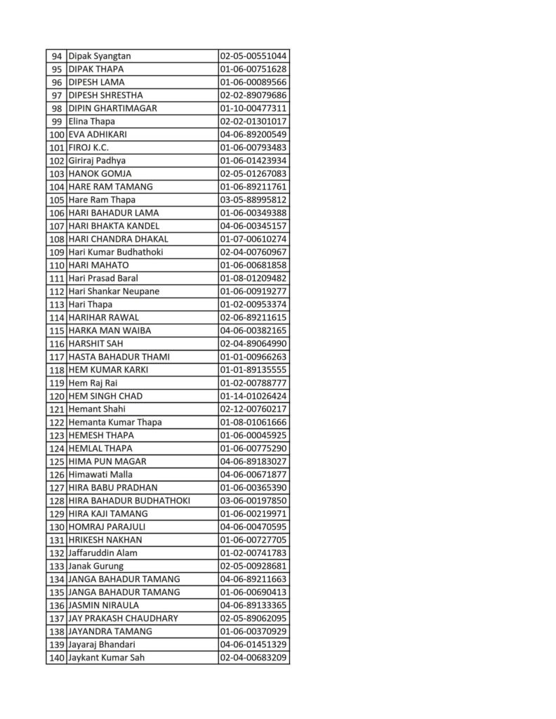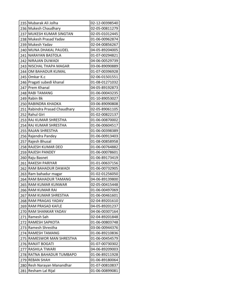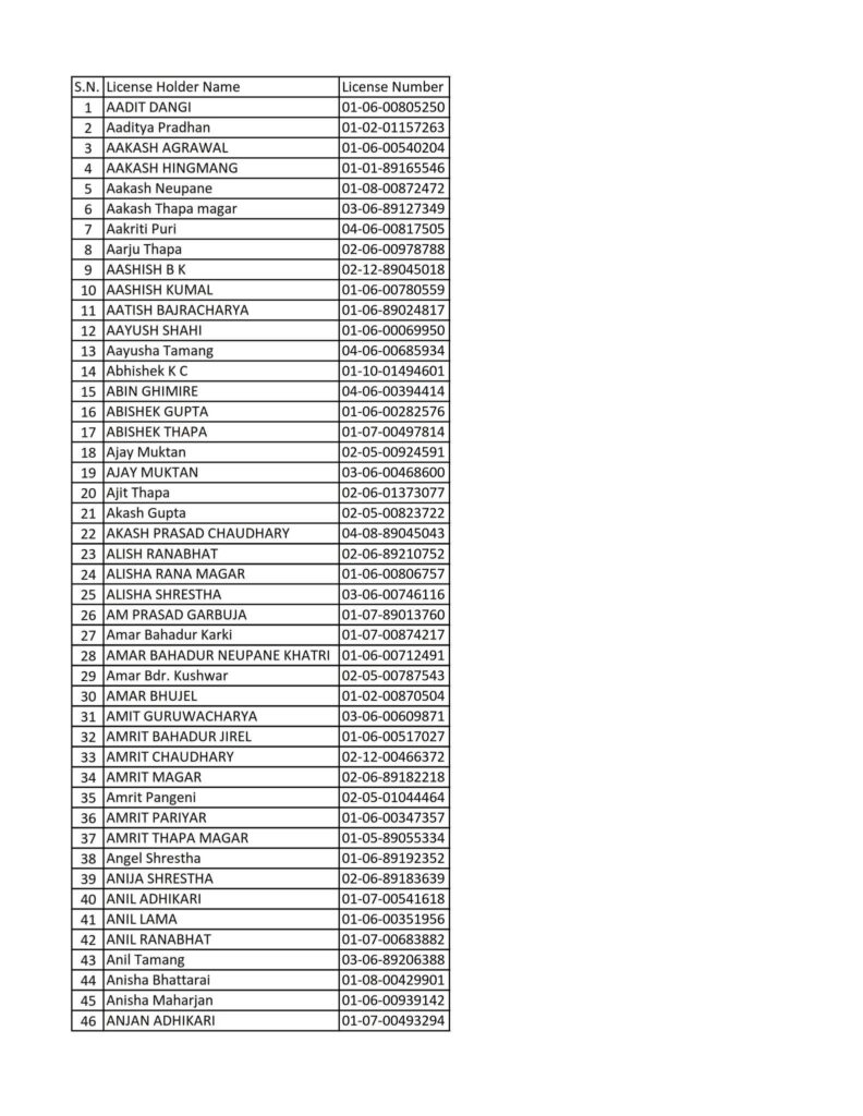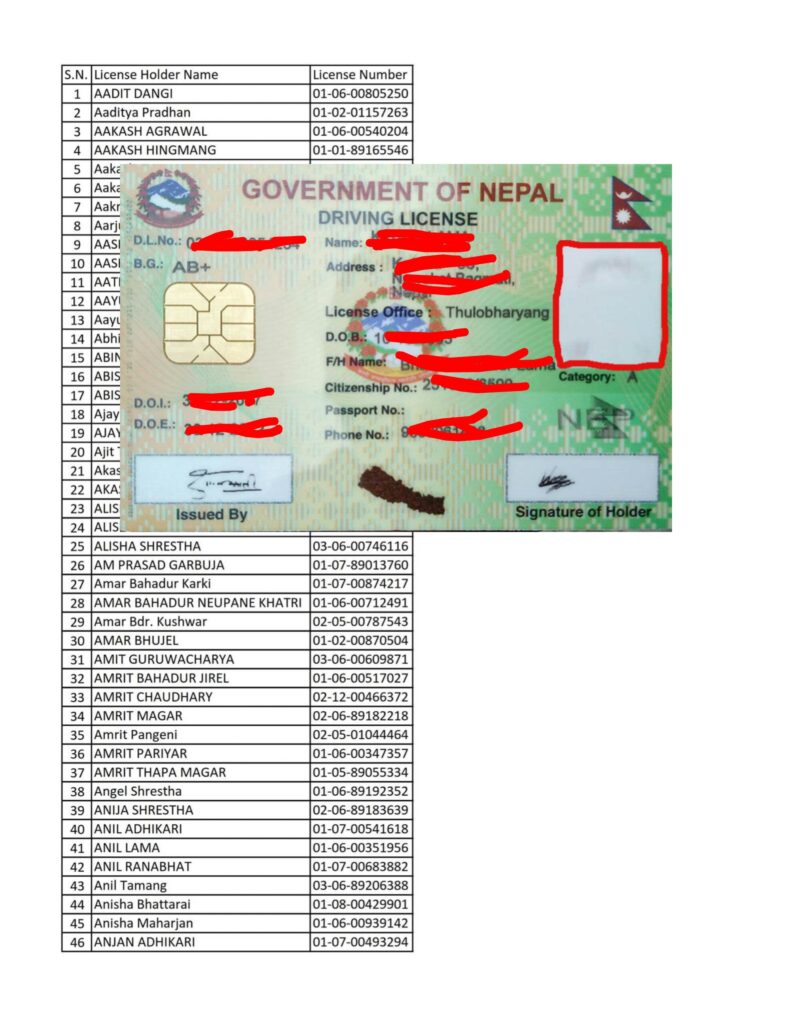 Today 2082-08-19 Printed Nepali Driving License Smart Card Name List