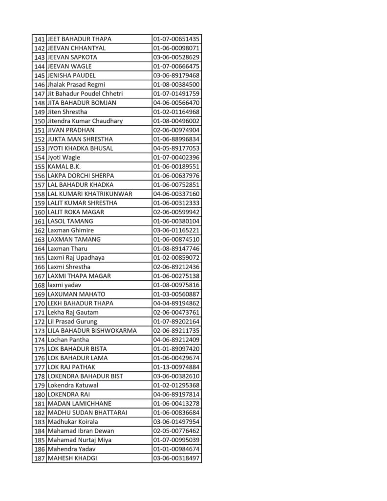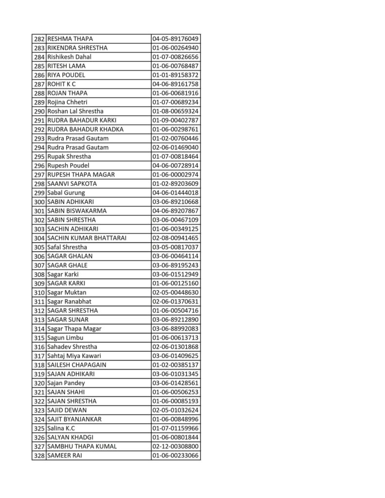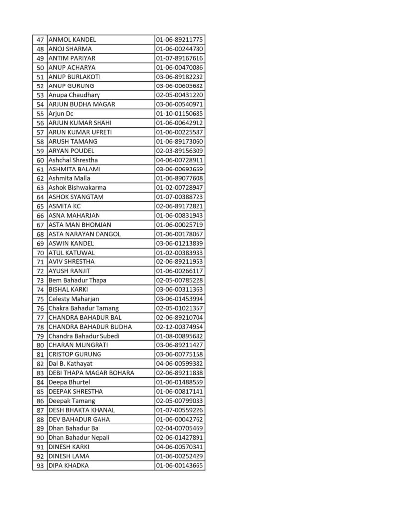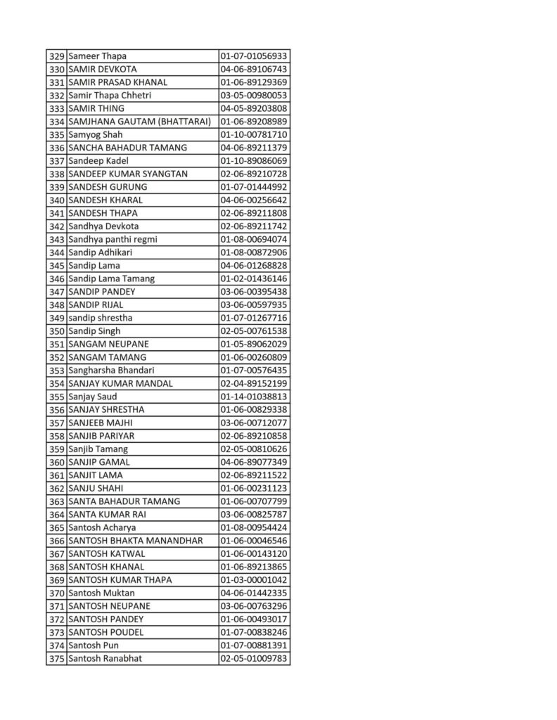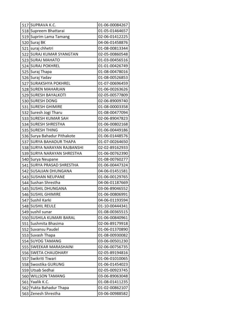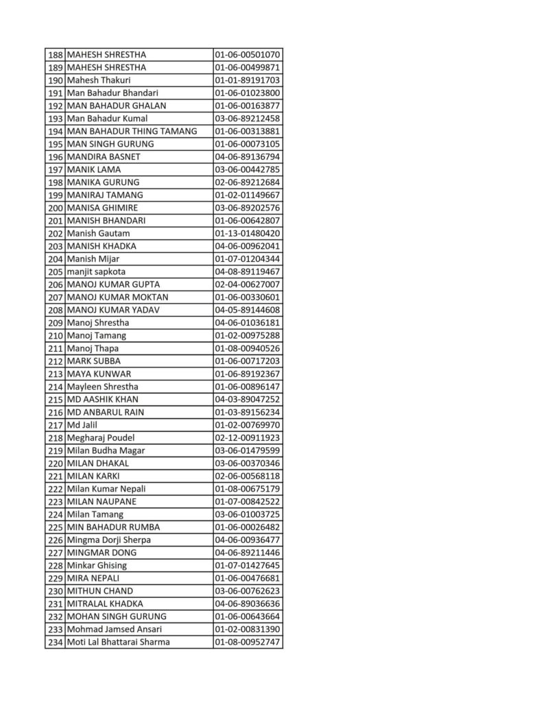 Today 2082-08-19 Printed Nepali Driving License Smart Card Name List