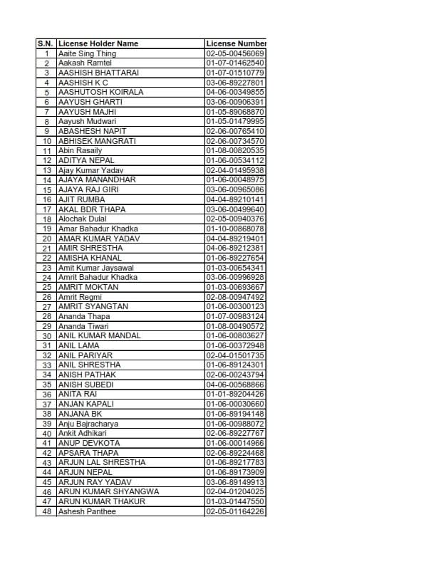 Are you searching for the Today Printed Nepali Driving License Namelist?
