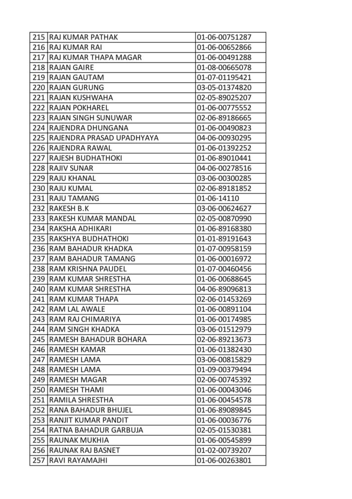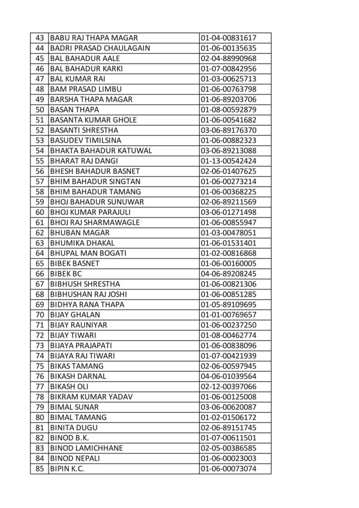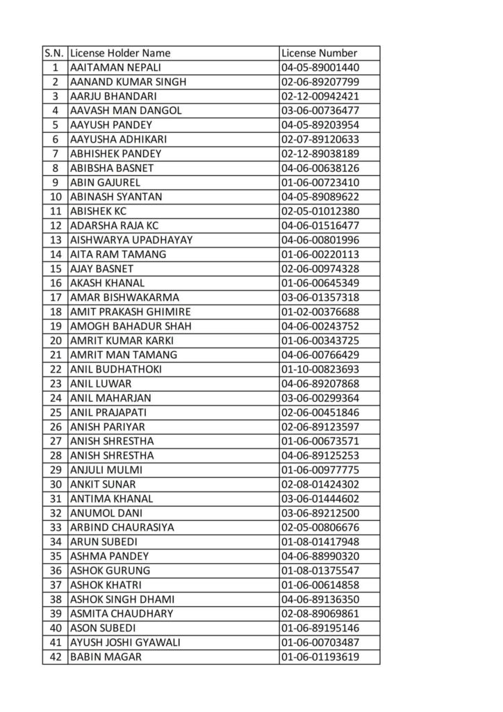 Today 2082-8-17 Printed Nepali Driving License Smart Card Name List